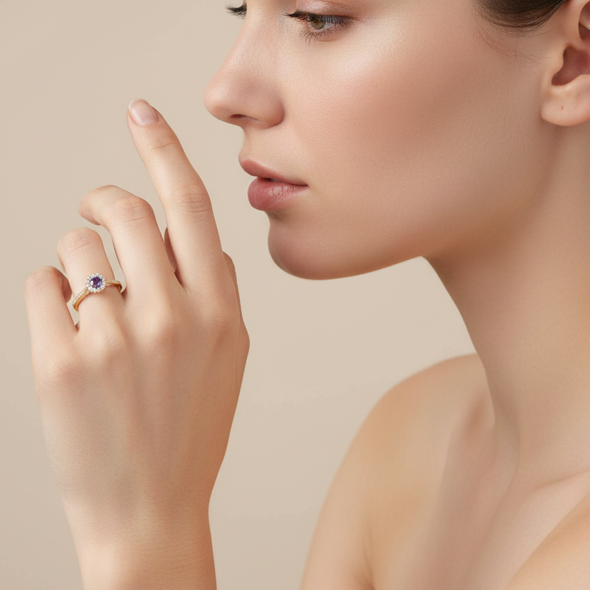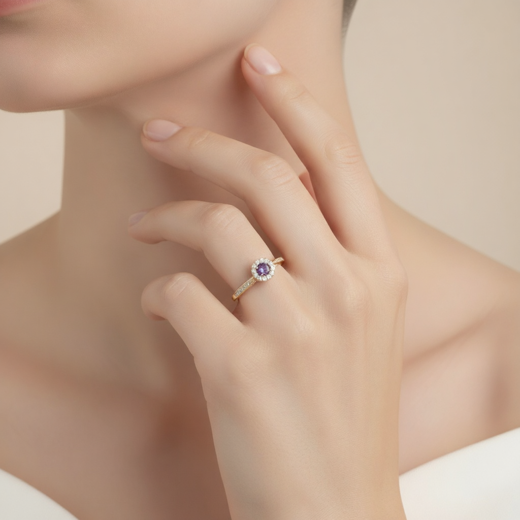 Procura por um anel de noivado nada óbvio? Que tal nosso modelo Amore Mio Ametista?