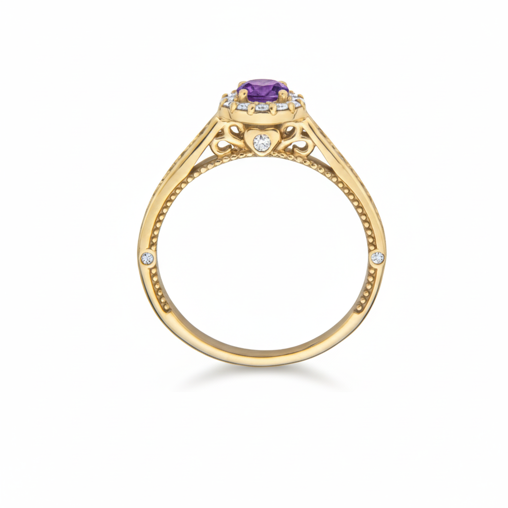 Um anel encantador com Uma Ametista Natural, 24 Diamantes de 1 pt e 8 de 0,5pt