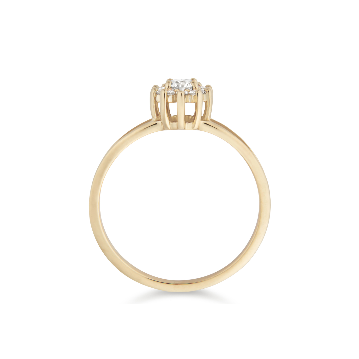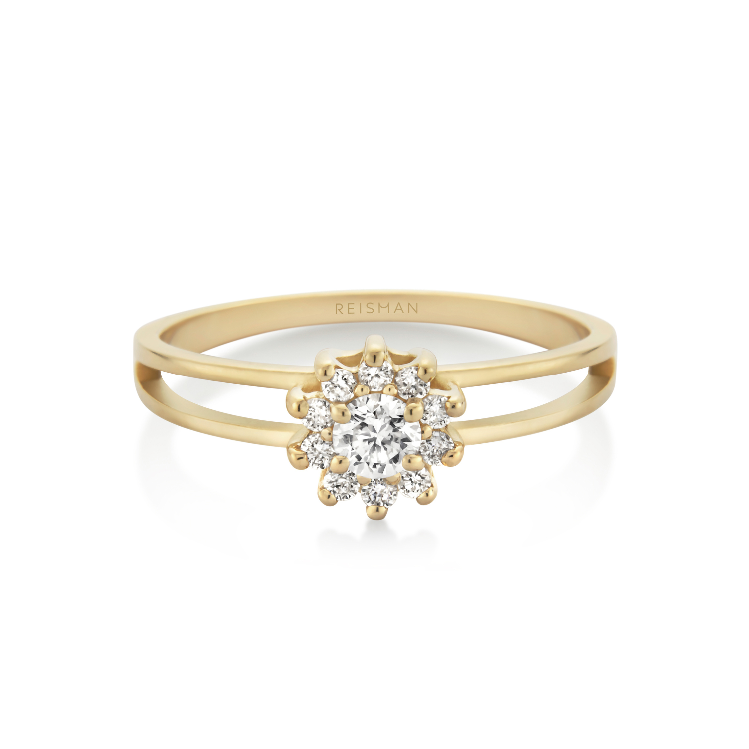 Uma joia delicada e marcante, perfeita para um pedido de casamento inesquecível. O anel de noivado Florence possui aro duplo e design inspirado em uma flor.