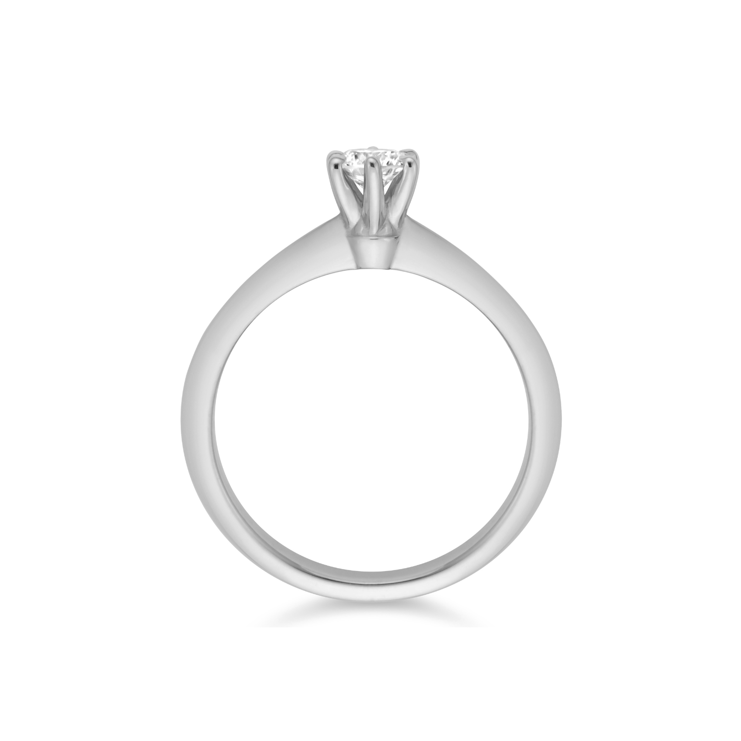 O modelo Marry Me em ouro branco 18k. São 6 garras que seguram o diamante para garantir ainda mais brilho à joia. Um anel de noivado perfeito para o sim!