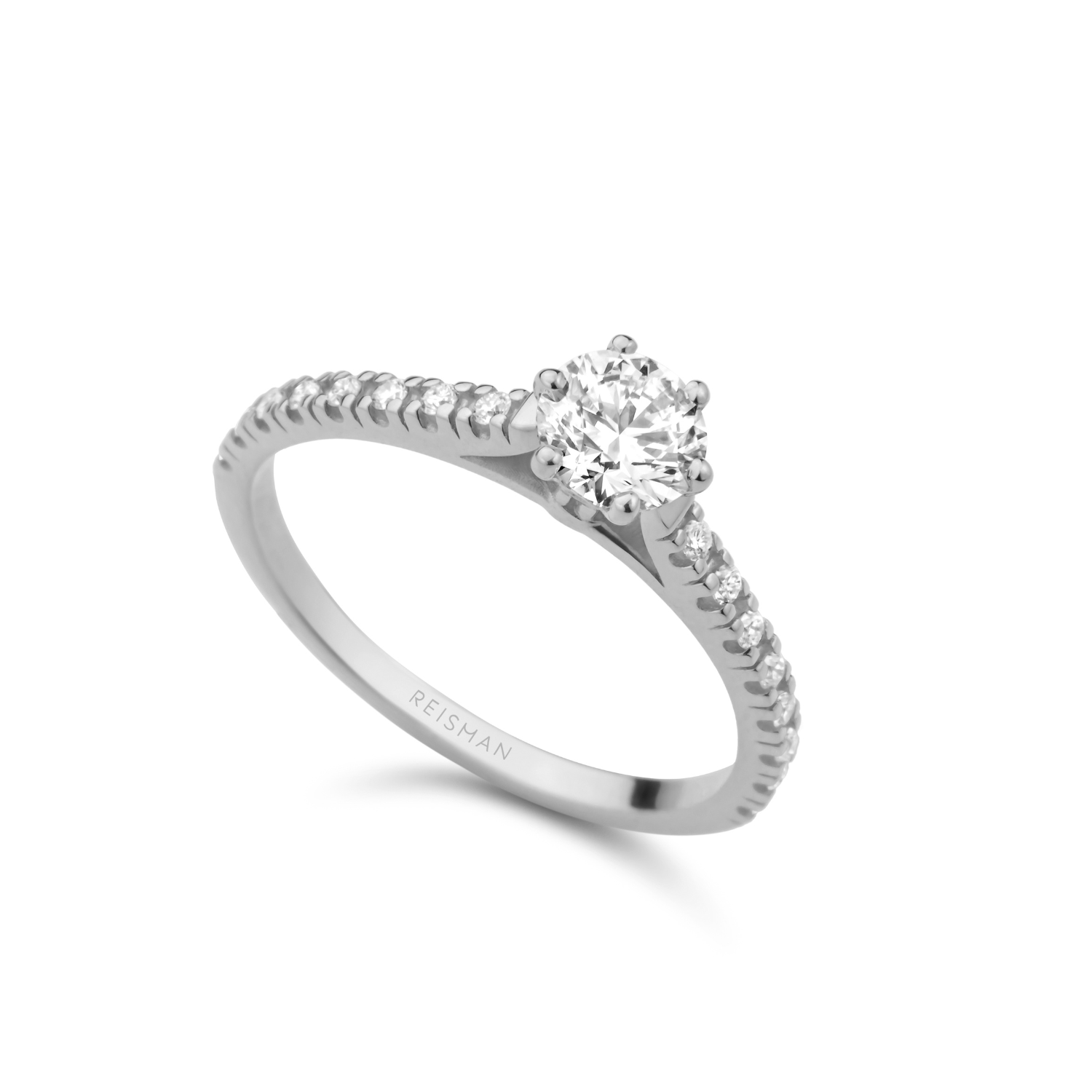 Experimente o encanto do Anel My Dream em ouro branco 18k, um sonho em forma de joia. Este extraordinário anel de noivado é mais do que uma simples peça; é a expressão tangível do seu amor e compromisso. Com um diamante central de 50 a 70 pontos, esta deslumbrante joia irradia elegância e sofisticação