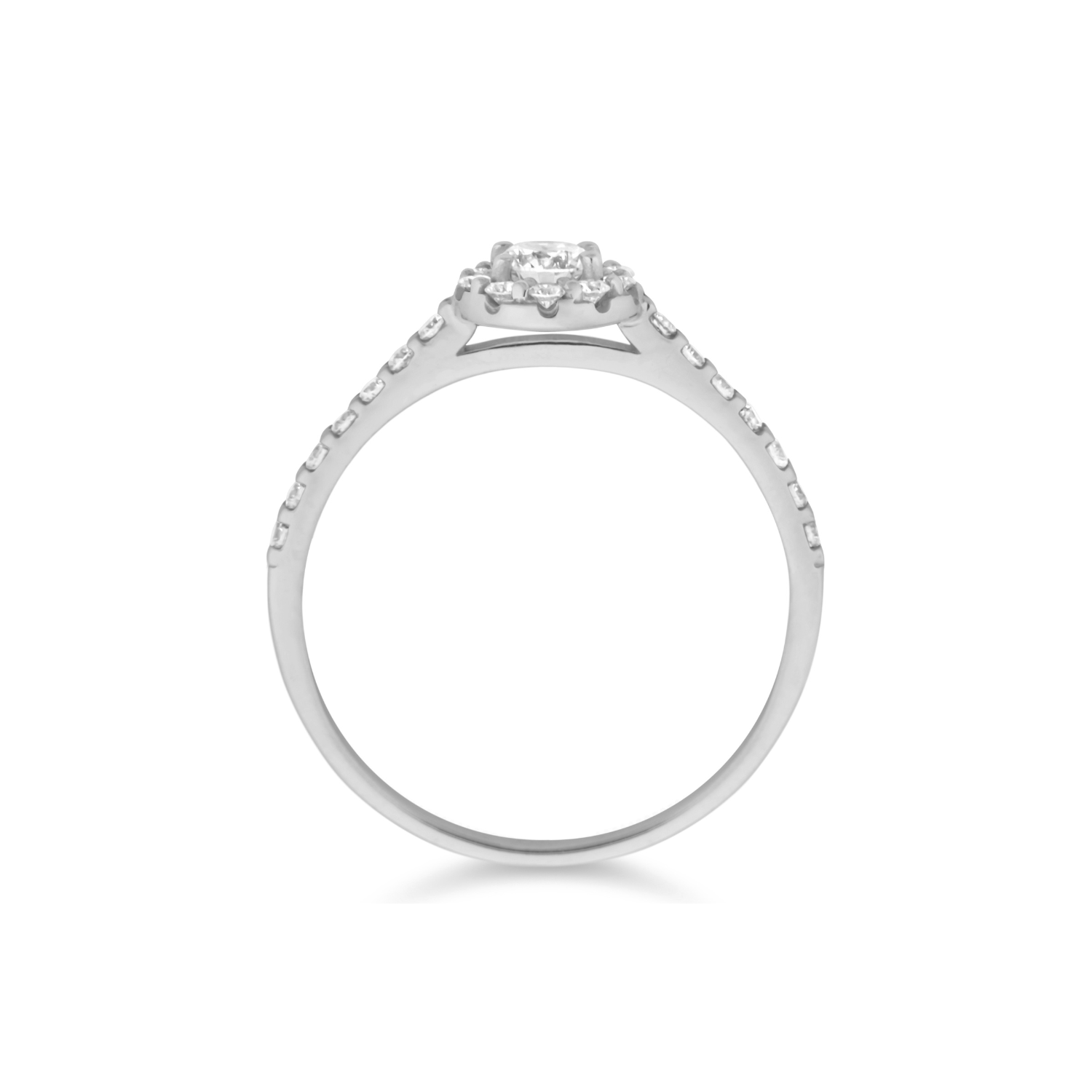 Este é um belíssimo anel de ouro branco estilo Halo Ring, que traz consigo um toque delicado e romântico.