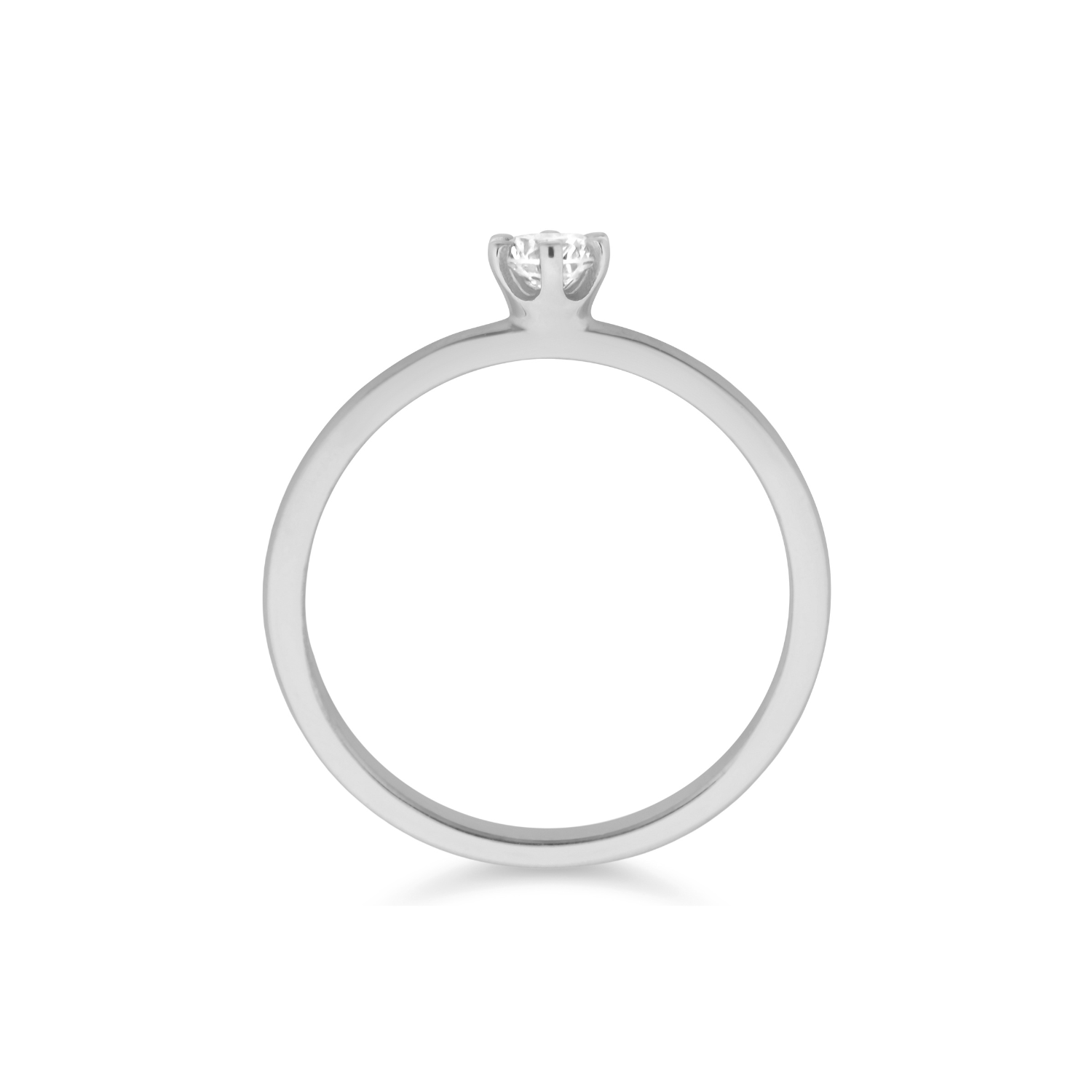 O anel Santorini em ouro branco é charmoso e delicado, com um design minimalista e moderno, possui seis garras que deixam a pedra em destaque e o aro liso garante a proposta minimalista desse modelo. Este anel é a escolha perfeita para um pedido de casamento inesquecível, simbolizando a pureza e a elegância do amor verdadeiro.