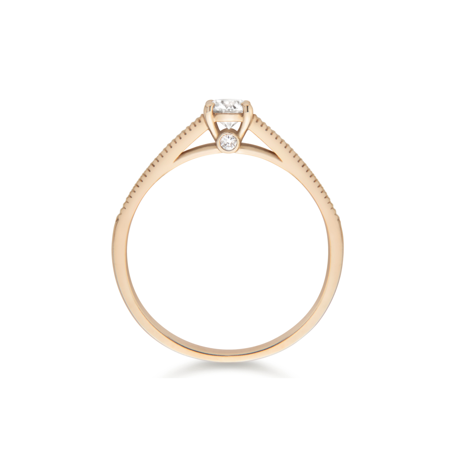 Nosso Anel de Noivado Taiti em ouro rose é uma joia marcante, perfeita para noivas que procuram algo mais vistoso e com um design diferenciado. Com um estilo solitário, este anel é verdadeiramente único, com uma torre que chama a atenção pelo seu formato distinto. Na base da torre, dois pequenos diamantes adicionam ainda mais singularidade e brilho a essa belíssima peça. Afinal, sabemos que a diferença reside nos pequenos detalhes. Não perca a chance de tornar seu pedido de casamento ainda mais especial com essa deslumbrante joia.
