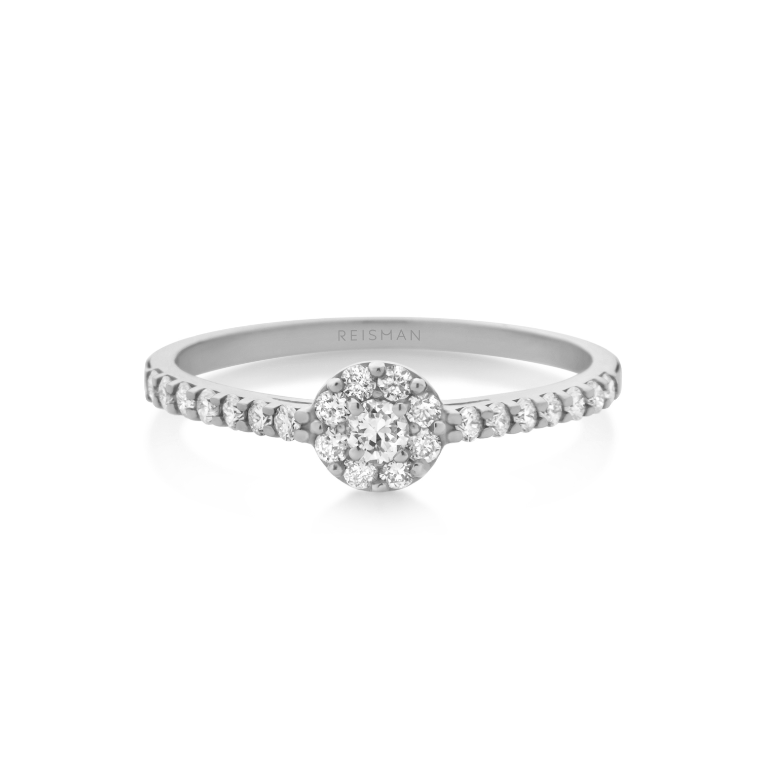 Anel estilo Halo Ring feito em ouro branco. Possui um mini halo, especialmente projetado para noivas que apreciam uma peça delicada e marcante. Com diamantes laterais que adicionam um brilho extra ao anel, esta é a escolha perfeita para qualquer ocasião especial, como uma proposta de casamento ou um presente de debutante. Este anel é uma peça sofisticada e atemporal que certamente será apreciada por muitos anos.